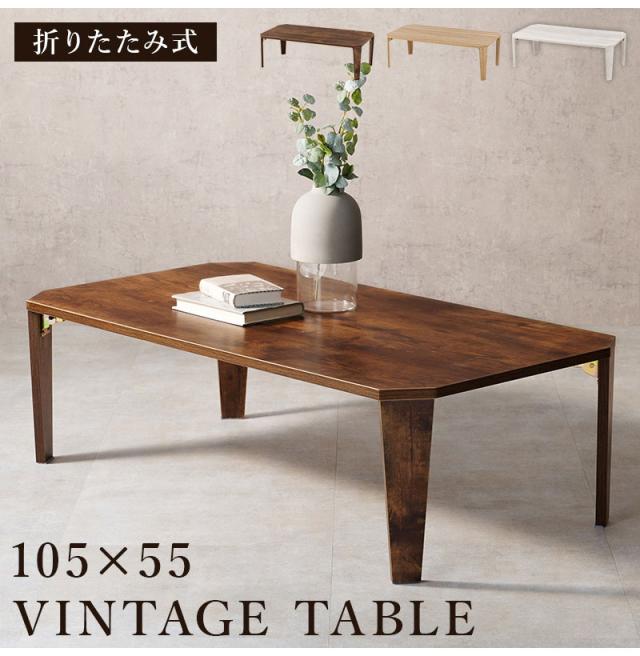 折りたたみテーブル センターテーブル 105×55 ヴィンテージ古木調 モダン 北欧 おしゃれ 折りたたみ 収納 折りたたみ 折れ脚テーブル テーブル 机 ローテーブル 一人暮らし 新生活(代引不可)【送料無料】