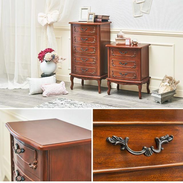猫脚チェスト 5段 アンティーク調 幅52cm マホガニー 引き出し 棚 収納棚 電話台 FAX台 収納 可愛い かわいい 姫系 姫家具(代引不可)【送