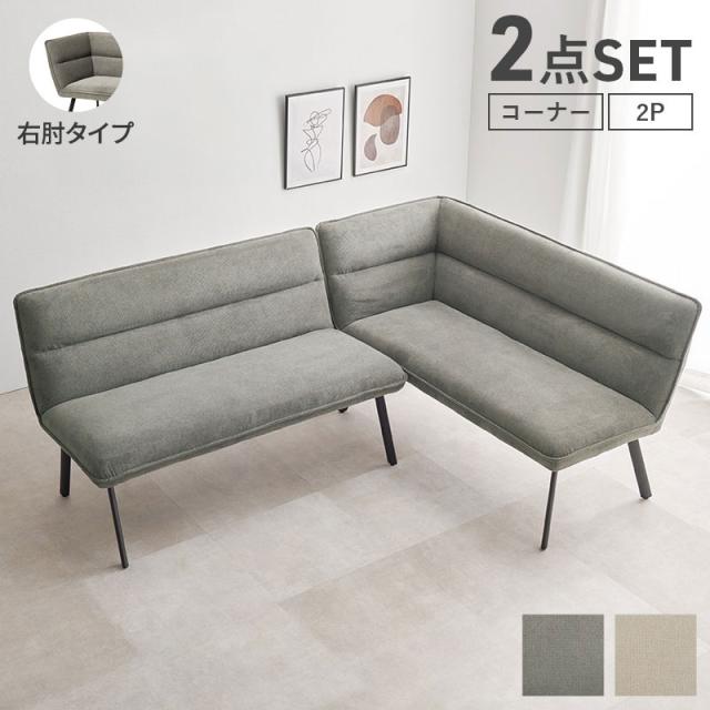 ダイニングソファ 2点セット 右肘タイプ コーナーソファ L字ソファ 2P ソファダイニング セパレート ゆったり座面 ダイニング チェア 椅子 イス ソファー 北欧 モダン おしゃれ(代引不可)【送