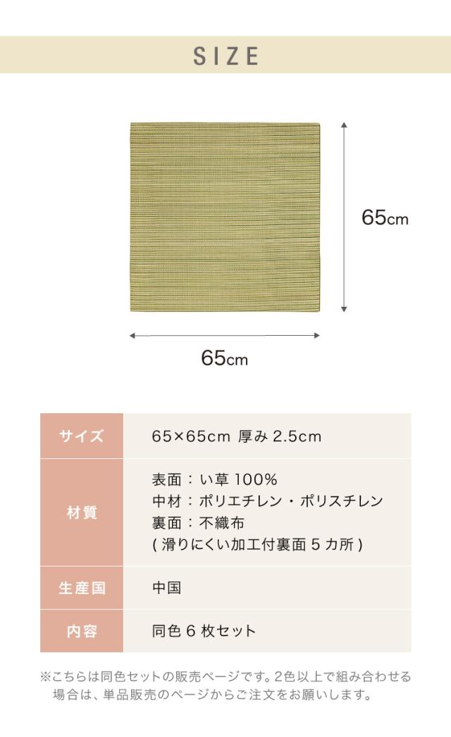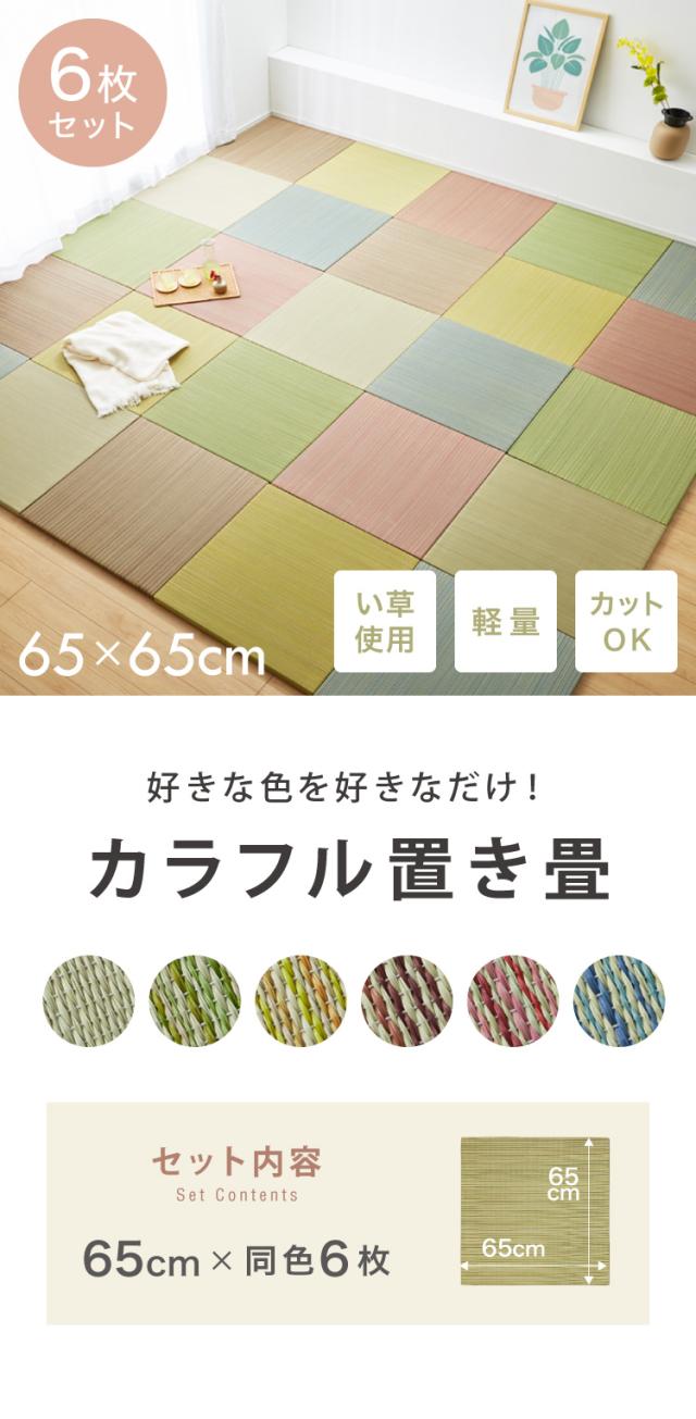 カラフル置き畳 同色6枚セット 置き畳 い草 畳 マット 65cm 半畳 軽量 滑り止め付 低ホルム 湿度調整 吸音 空気清浄 防音対策 カットOK 和室 シンプル DIY リビング 子ども部屋 薄畳 ユニット畳(代引不可)【送料無料】