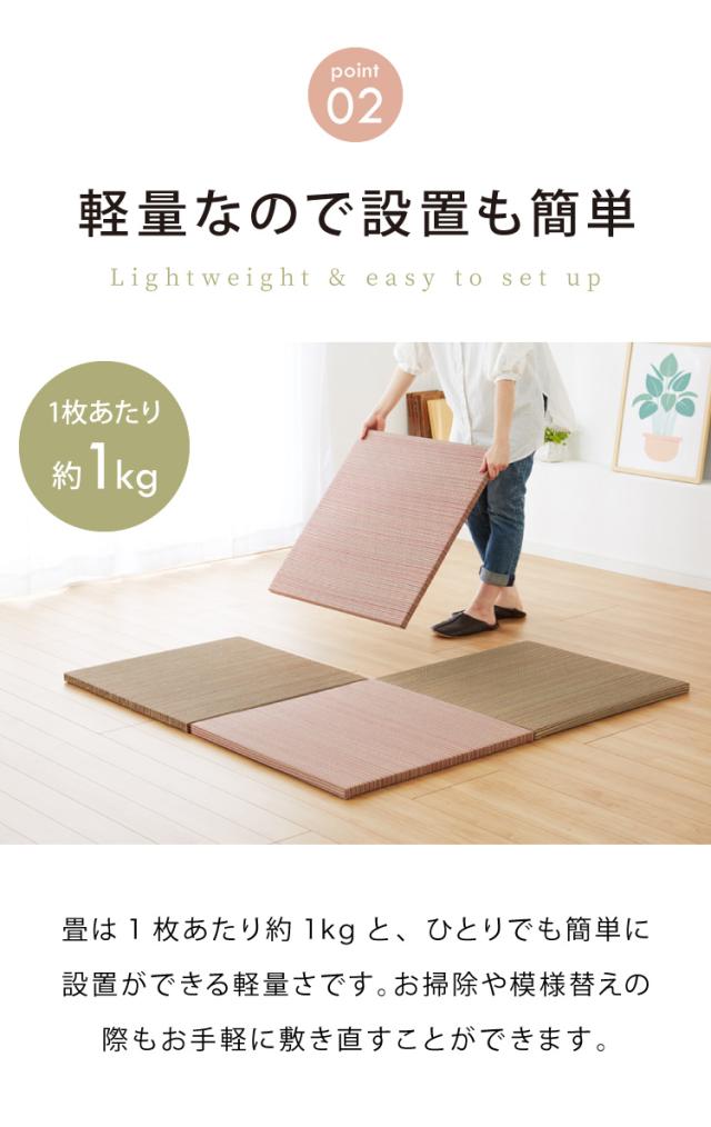 厚み2.5cm、1枚当たり1kgと軽量のため模様替えやお掃除も楽々。