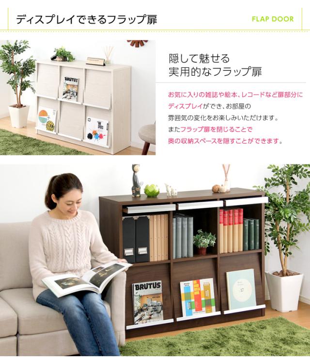 フラップ式 チェスト 幅114.5 オープンラック 木目調 木製 収納 マガジンラック 本棚 シンプル おしゃれ 奥行き35 雑誌(代引不可)【送料無料】