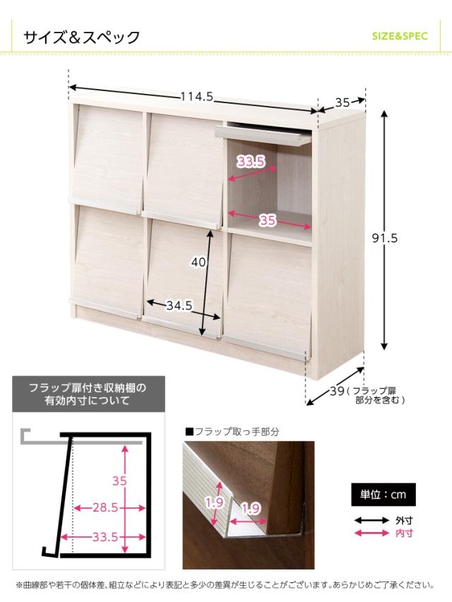 外寸:(約)幅114.5x奥行き39x高さ91.5cm(※フラップ扉部分を含む)