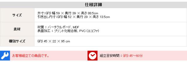 外寸:(約)幅59x奥行き35x高さ88.5cm