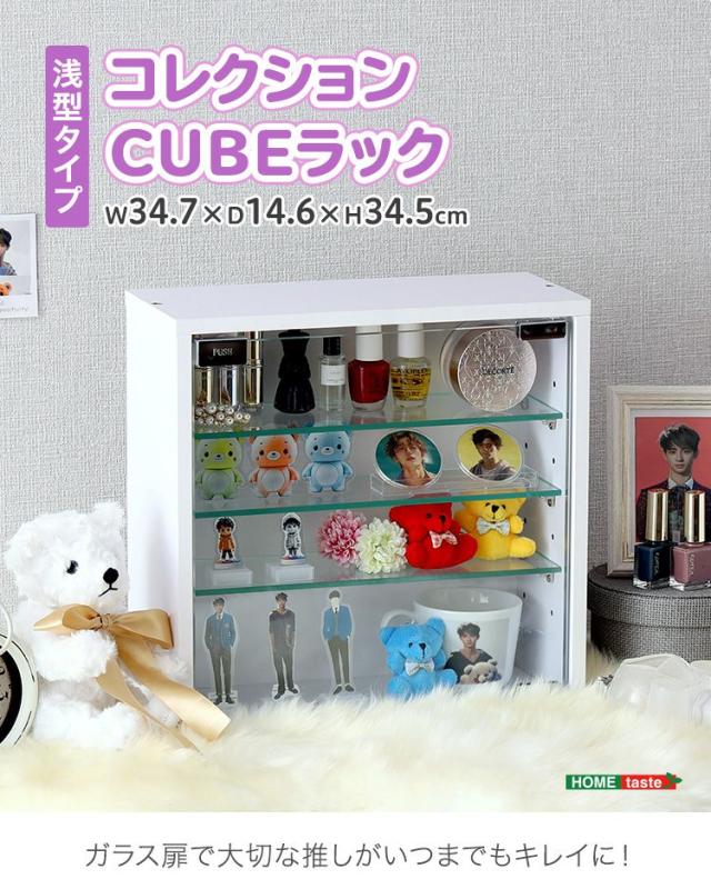 コレクションキューブラック 浅型タイプ コレクション ラック キューブラック 推し活 アイドル フィギュア アクリルスタンド トレカ ガラス扉 展示 キューブボックス 浅型(代引不可)【送料無料】