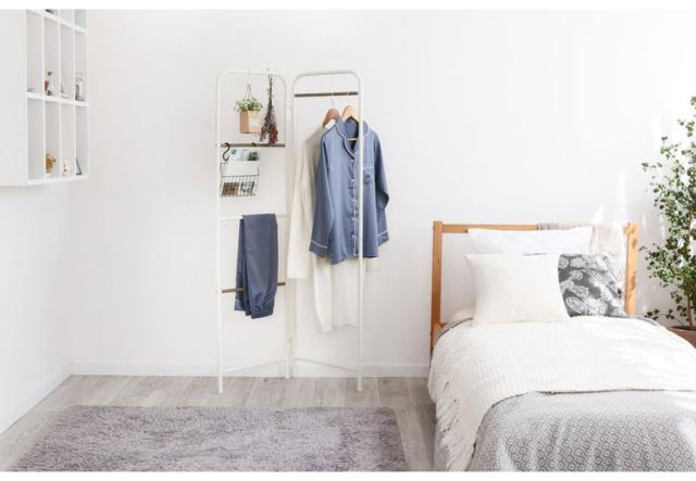 省スペースでも気軽に設置できるデザイン性のあるスタイルハンガーです。ワンピースやコートなどの長物と、衣類やバッグ、帽子、ストールなどの小物を掛けることができます。お気に入りの衣類を飾るディスプレイ場所としても活用できます。使用しないときは、折りたたんでコンパクトに収納可能です。便利なS字フックが2個付いています。簡単に組み立てができます。使用時の推奨開き角度は90度です。