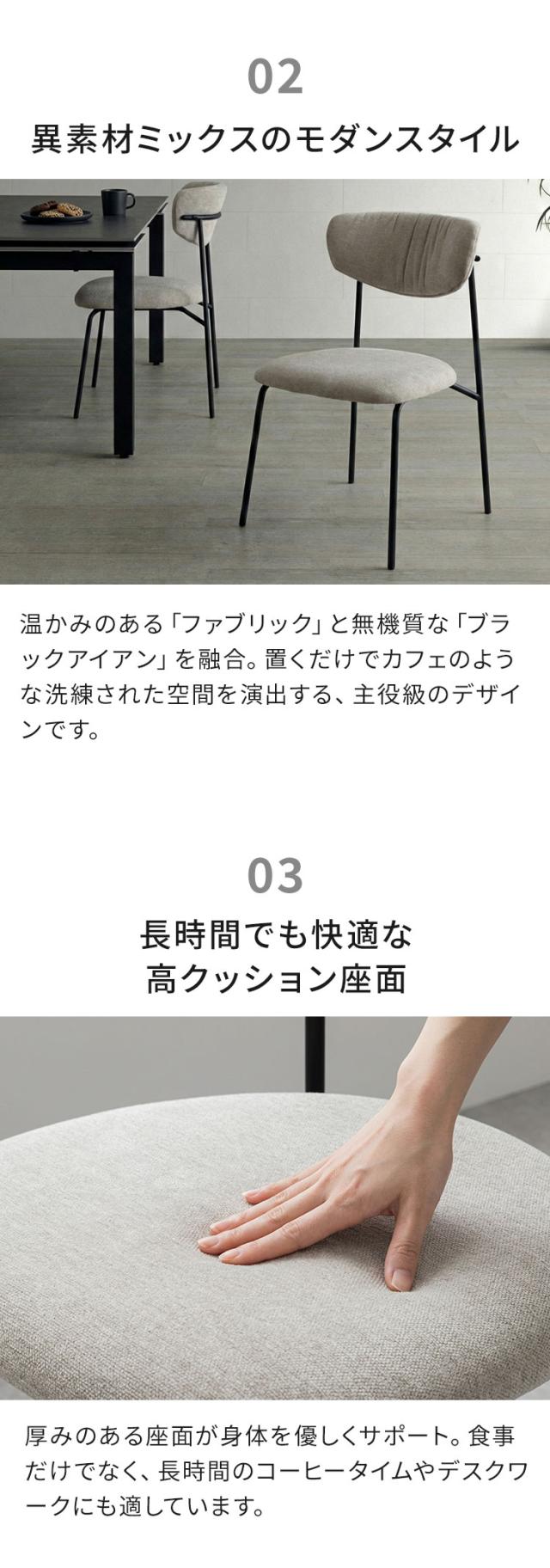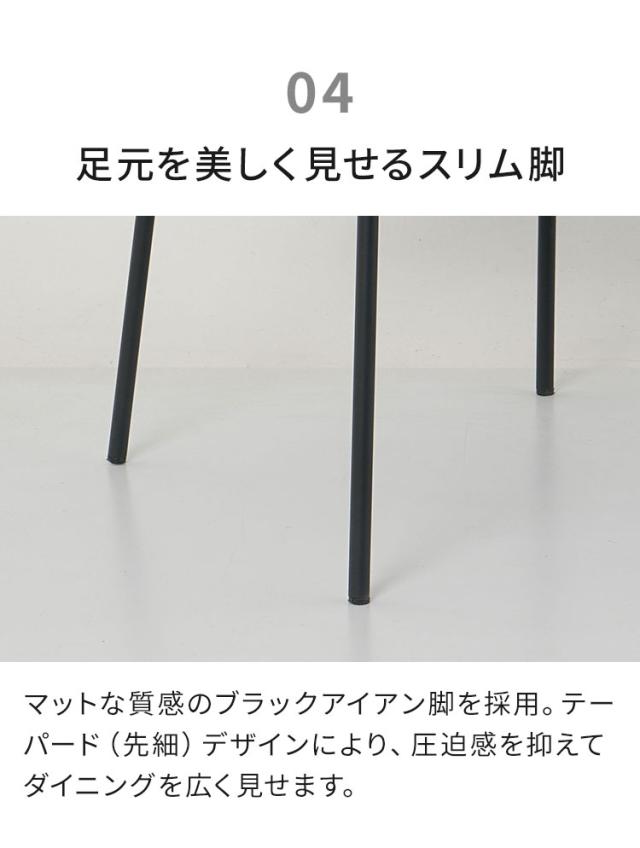モダンなアイアン脚: マットな質感のブラック脚が空間を引き締め、アジャスターでガタつきも防ぎます。