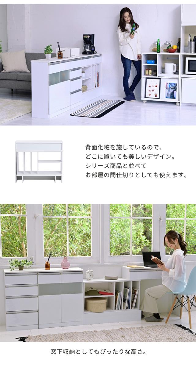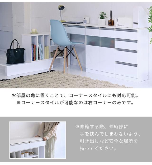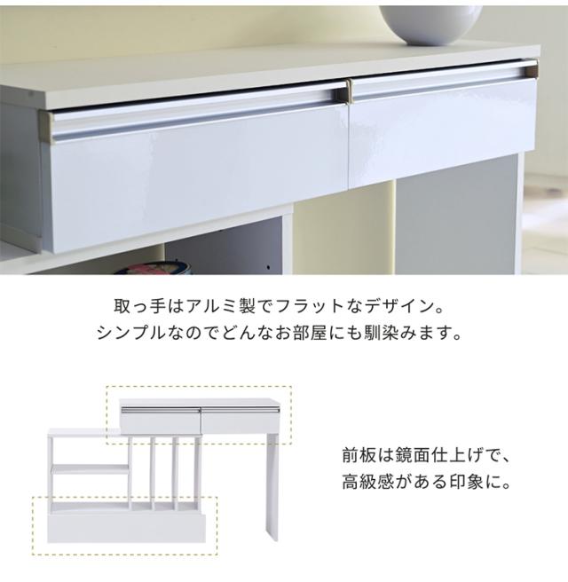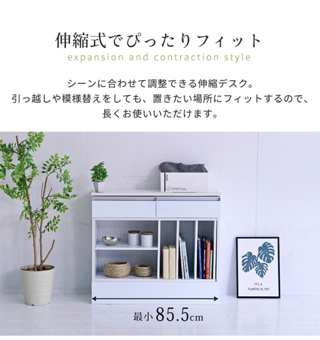 カウンター下収納 伸縮ラック 鏡面仕上げ 白 ホワイト 伸縮デスク オープンラック 棚 ラック ロボット掃除機収納にも 背面化粧 間仕切り カウンター下 収納 北欧 おしゃれ(代引不可)【送料無料】