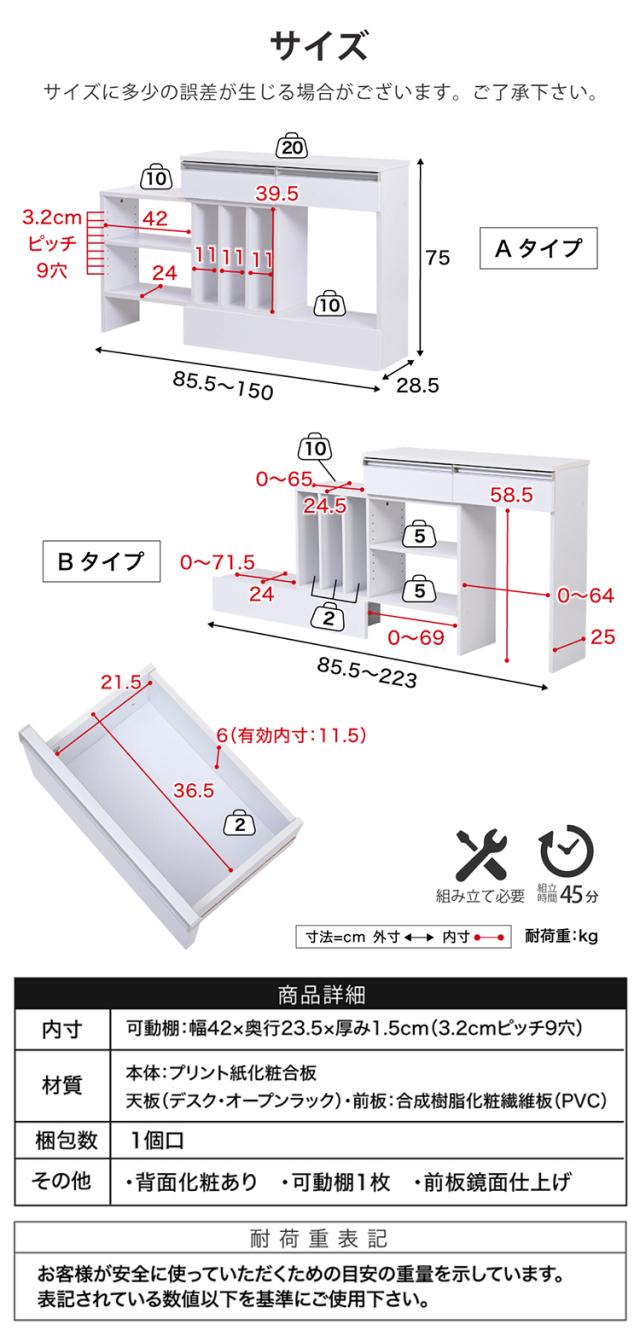 (Aタイプ)幅85.5〜150×奥行28.5×高さ75