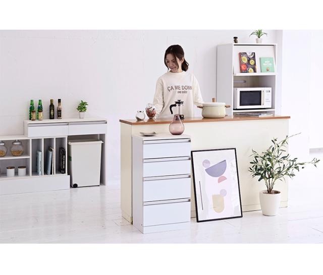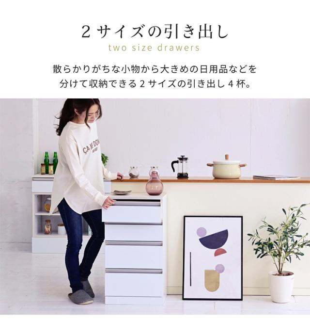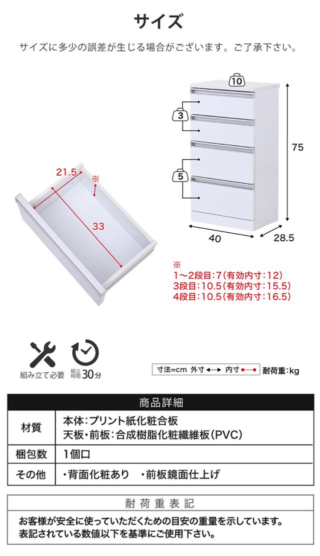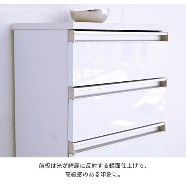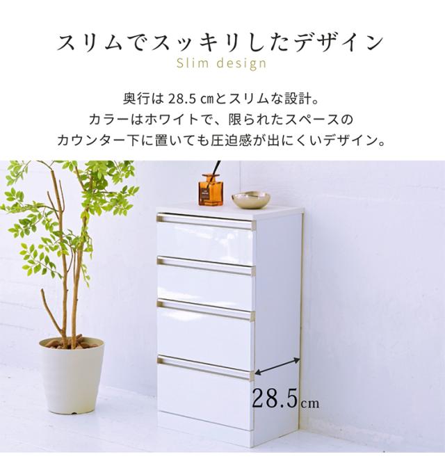 カウンター下収納 4段チェスト 幅40 鏡面仕上げ 白 ホワイト 引き出し 引出し 棚 ラック 収納 スリム コンパクト リビング収納 カウンター下 収納 北欧 おしゃれ(代引不可)【送料無料】