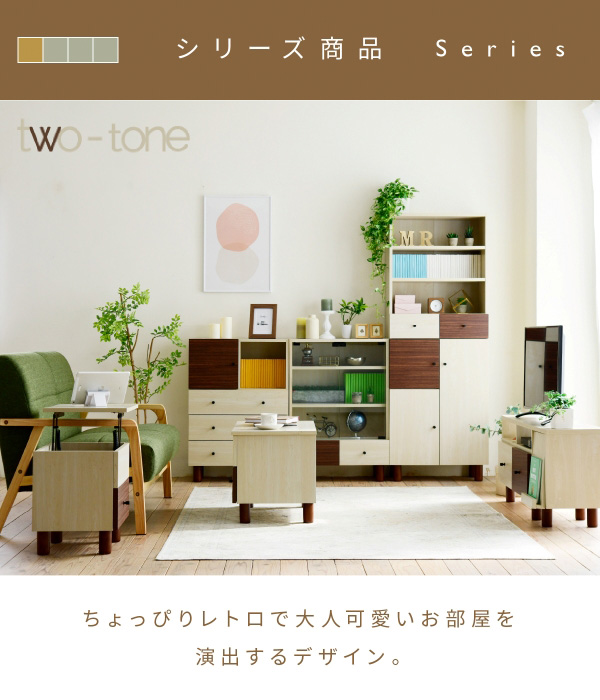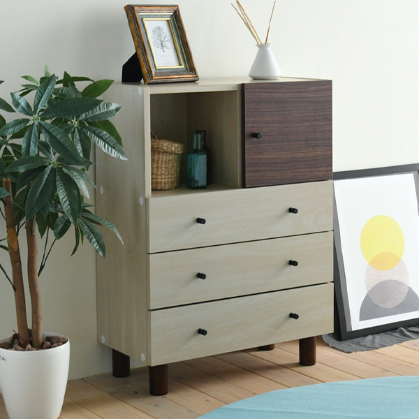 木目のあるナチュラル×ダークブラウンのツートーンで、ちょっぴりレトロな大人可愛いマルチチェスト。
