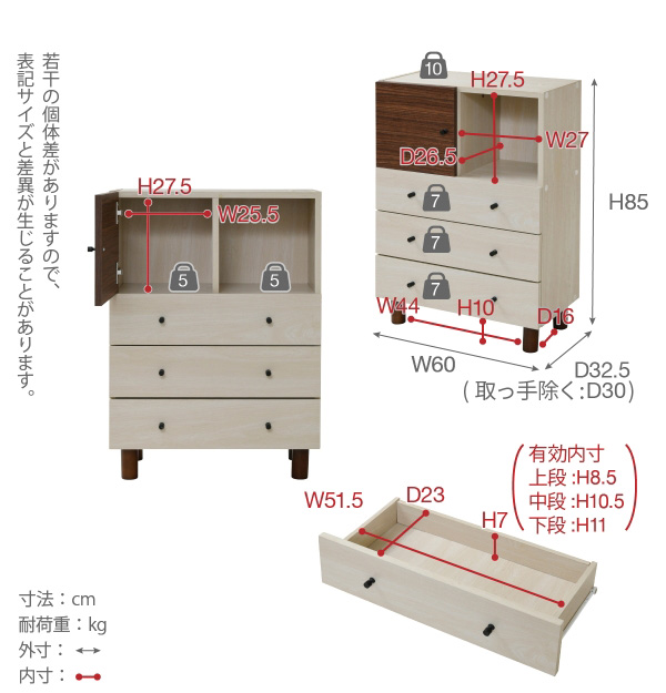 [引き出し]各約7kg以下