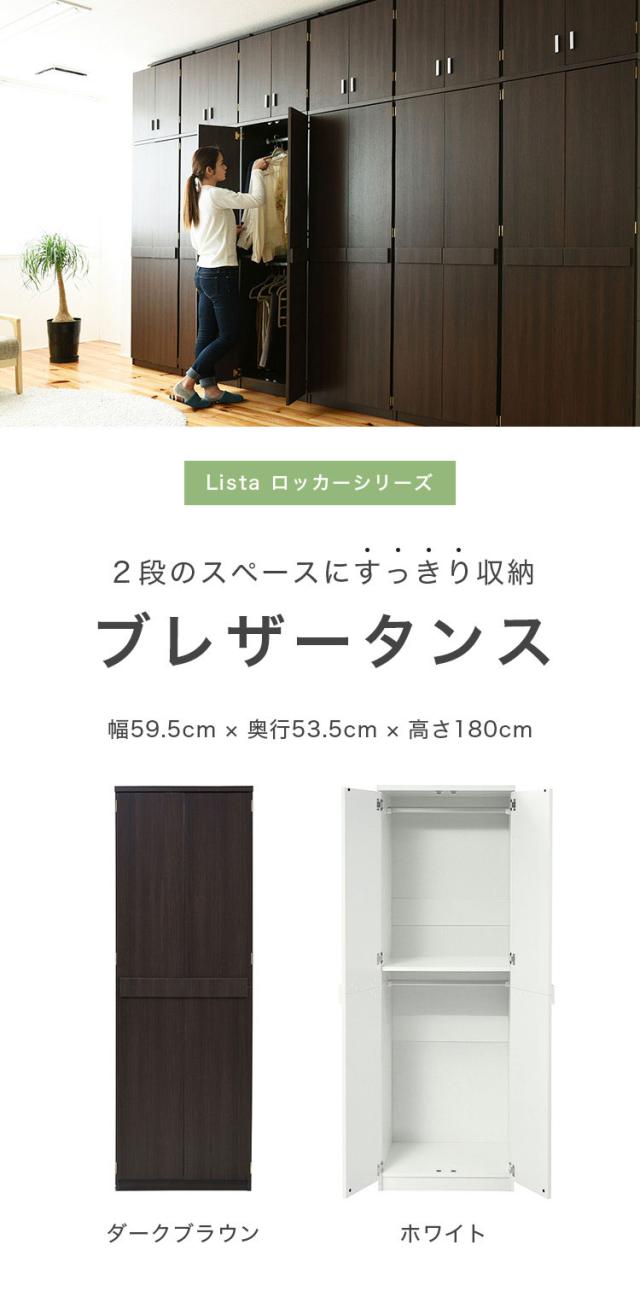 ロッカー シリーズ ブレザータンス 幅 60 高さ 180 2段 ロッカータンス 収納 クローゼット 木製ロッカー ダークブラウン(代引不可)【送料無料】