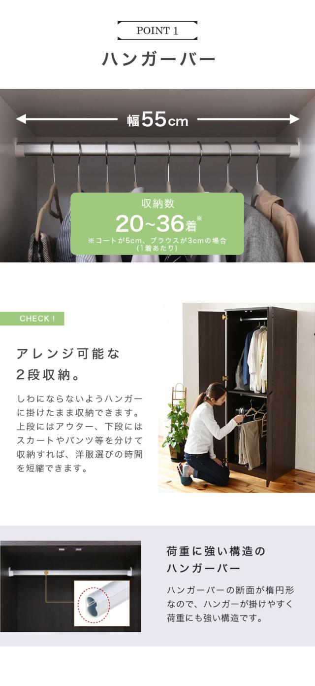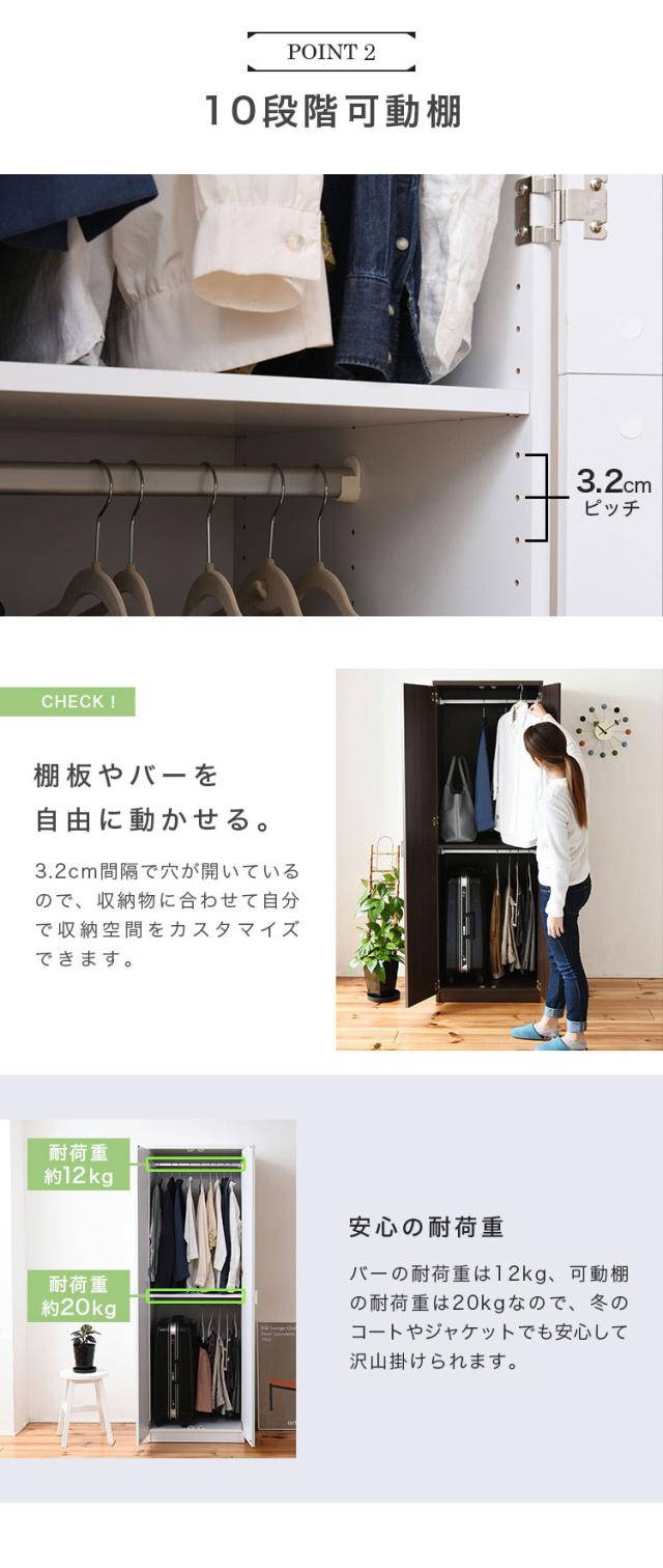 (下段ハンガーバー)幅54.5×高さ(可動棚最上段)80〜(可動棚最下段)54.5cm(3.2cmピッチ10穴)