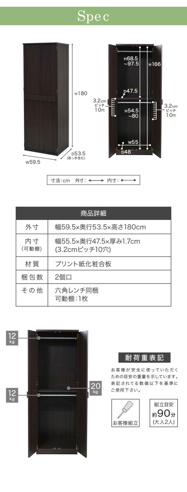 [内寸]:(扉内)幅55×奥行48×高さ166cm