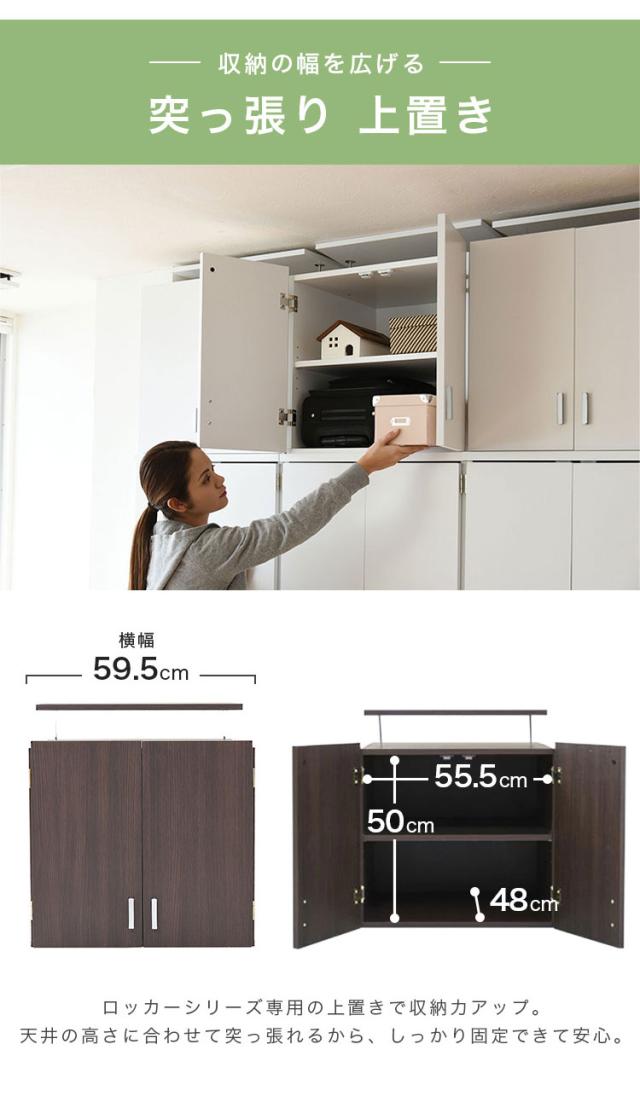 ロッカー シリーズ 上置き 棚 ラック 単品 幅60 天井 つっぱり 収納 クローゼット 一人暮らし ダークブラウン(代引不可)【送料無料】
