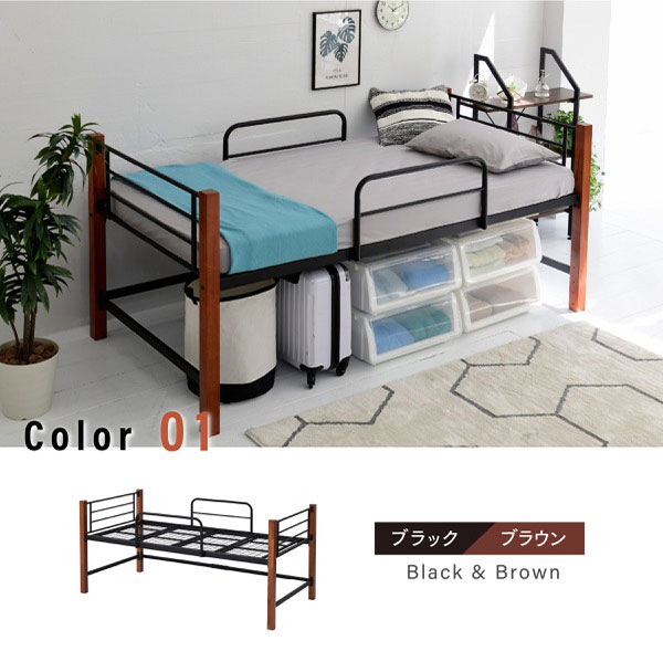 パイプベッド シングルベッド 天然木脚 ミドルタイプ 高さ96cm 頑丈 ベッドガード 手すり ハイタイプ ベッドフレーム スチールベッド ベッド下収納 北欧 おしゃれ(代引不可)【送料無料】