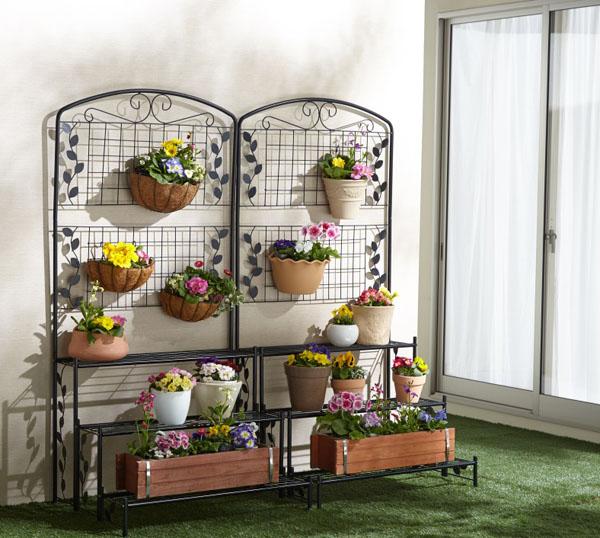 お家の玄関をオシャレに。鉄製のフェンスが付いたプランターラック壁面を緑化することで立体感のある安らぎ空間を演出でき、緑が見た目にも優しく、落ち着きます。丈夫なスチール製で壊れにくいのも嬉しいですね。