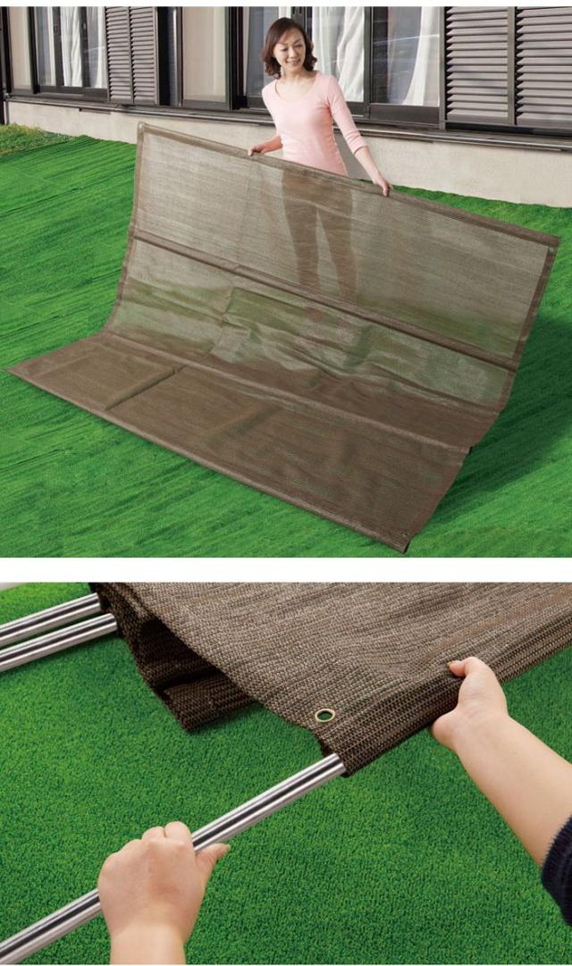 - 西日が強く、部屋の温度を下げるため購入しました。期待以上に効果を発揮しています。ただ、支柱があまり丈夫じゃないので固定ヒモを使わないと、すぐ倒れます。また、つなぎめが甘いのか、使いようによっては抜けて...