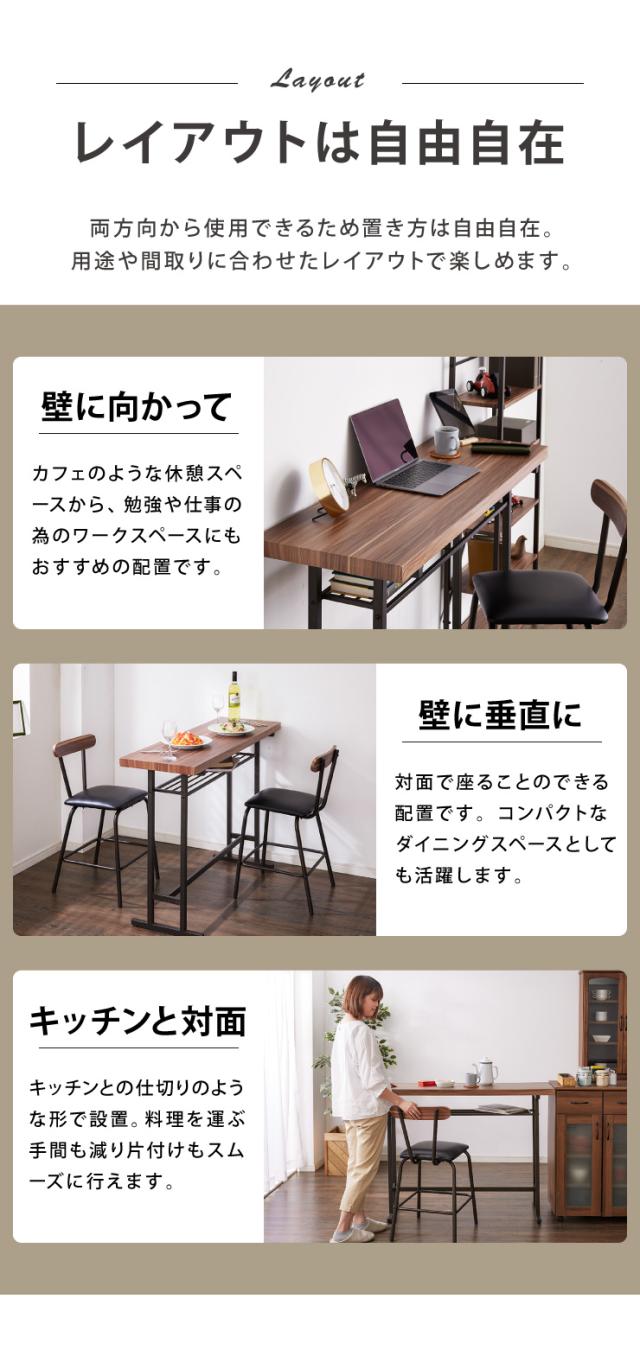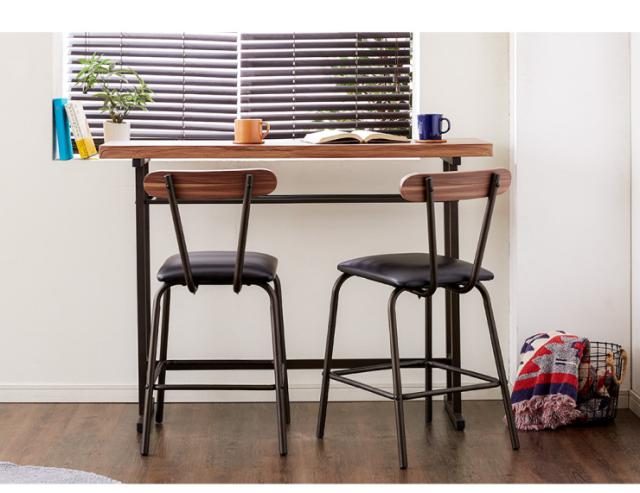 カウンター3点セット、ダイニングセット、カウンターテーブル、セット、カウンター、テーブル、チェア、2人、幅120cm、木目調、スチール、机、男前、おしゃれ家具、ダイニングセット、カフェ風、テレワーク、在宅ワーク、ミッドセンチュリー、韓国インテリア、韓国