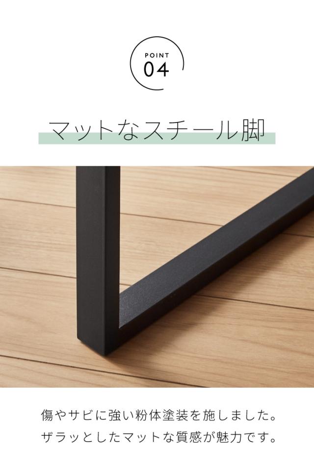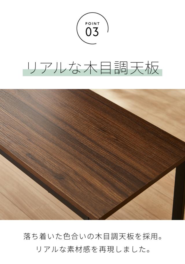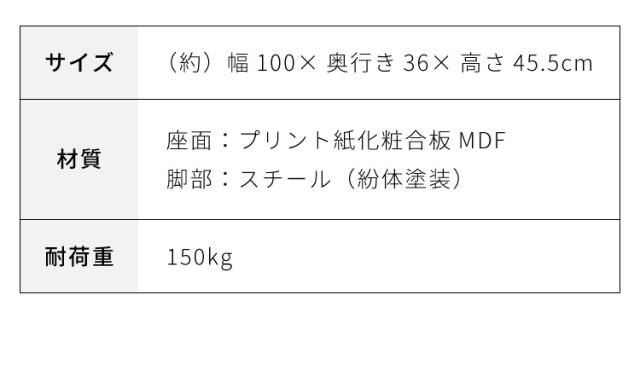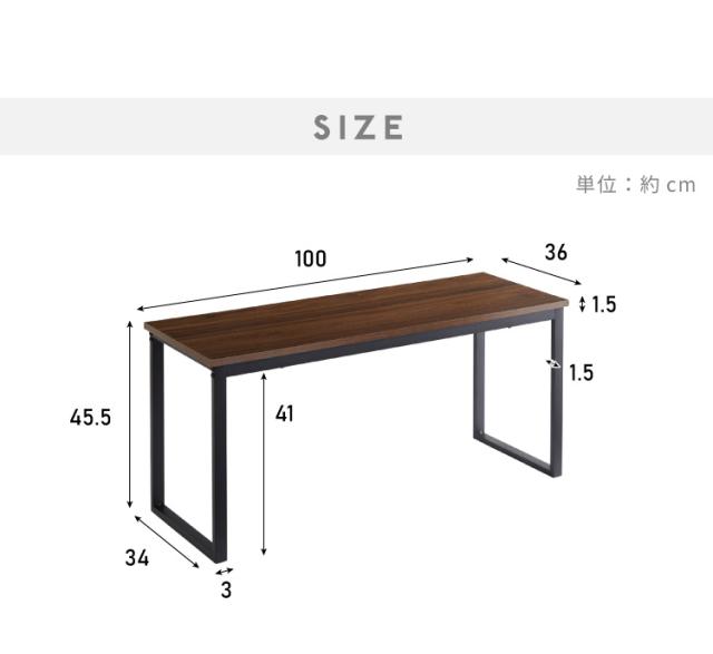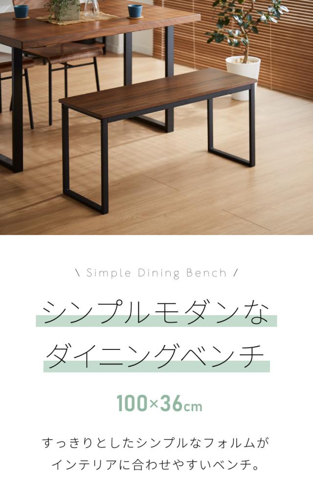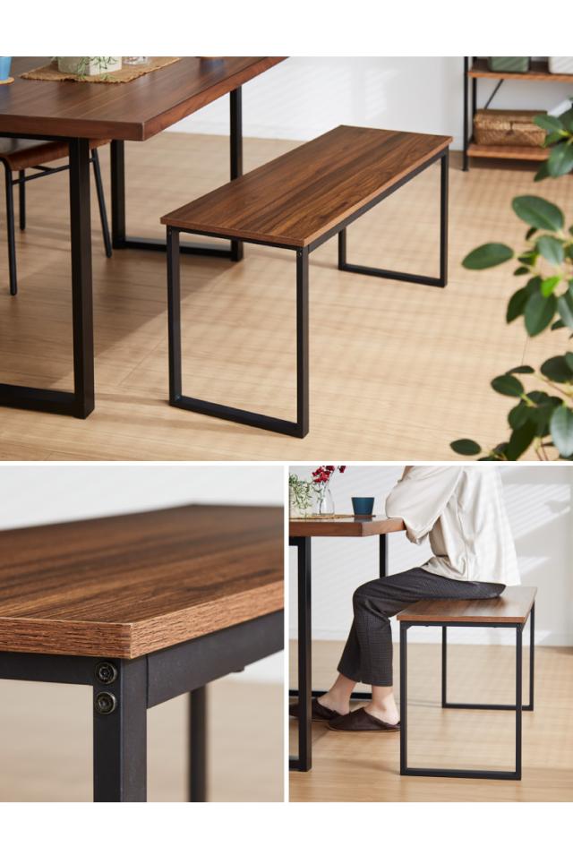 ・リアルな木目調天板とブラックのスチール脚がおしゃれなダイニングベンチ