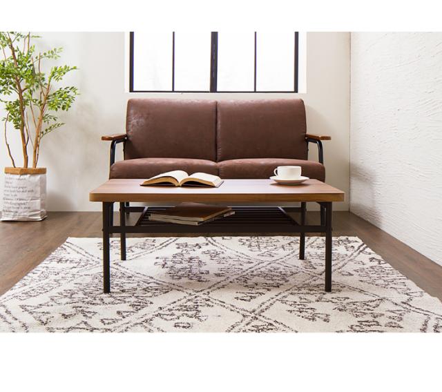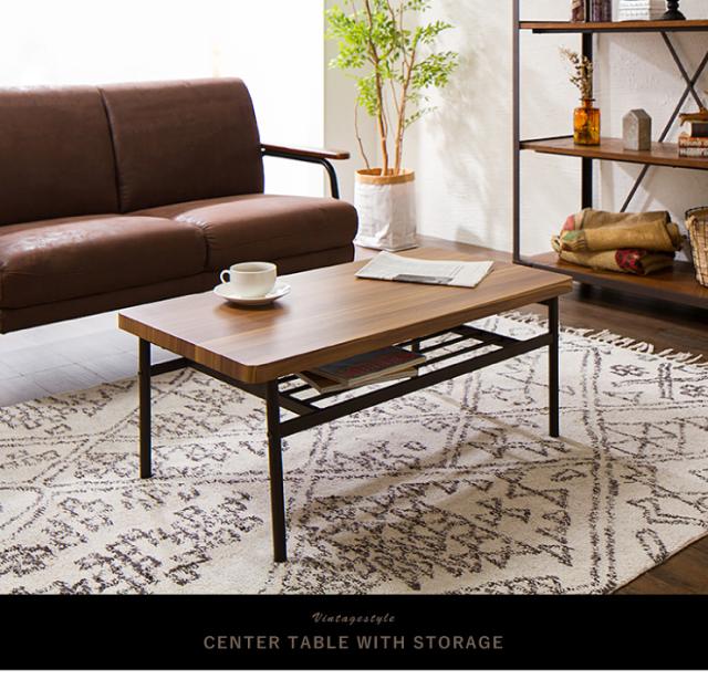 棚付収納センターテーブル テーブル 木製 木目 ローテーブル センターテーブル 棚付き モダン 北欧 天然木 西海岸 インテリア ヴィンテージ カフェ風 【送料無料】