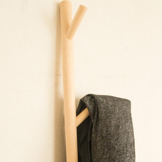 玄関や廊下などの限られたスペースに置ける、壁に立てかけて使うコートラック。