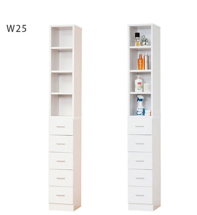 隙間収納 すき間収納 幅25cm スリム 鏡面仕上げ 白 ホワイト キッチン収納 食器棚 リビング収納 ランドリー収納(代引不可)【送料無料】