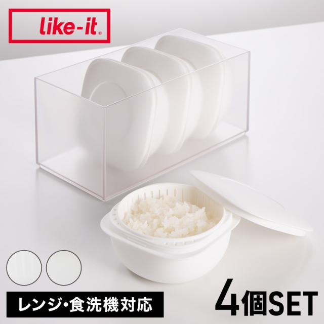 ライクイット (like-it) 蒸気であたためる冷凍ごはん容器 4個組(収納ボックス付き)LBK-S-02 セット クリア 一膳分(160~200g) ご飯冷凍容器(電子レンジ/食器洗い乾燥機対応) 日本製(代引不可)【送料無