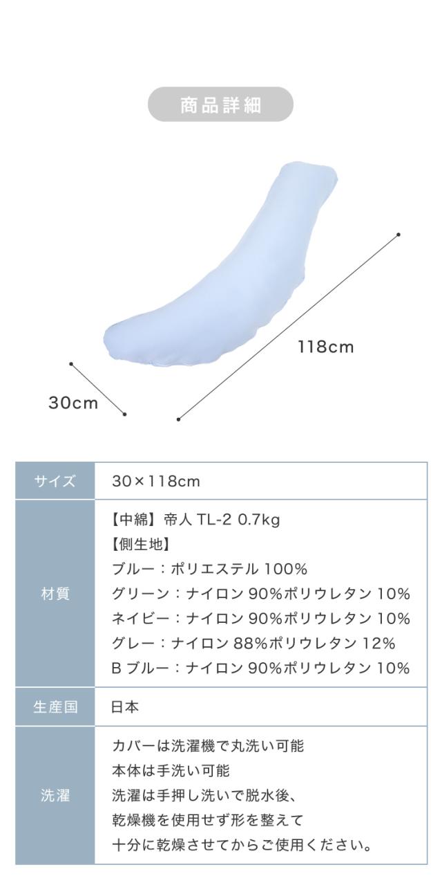 抱き枕 日本製 テイジン製中綿使用 ボディクッション 接触冷感カバー付き ブルー 接触冷感 ひんやり カバー付き 洗える【送料無料】