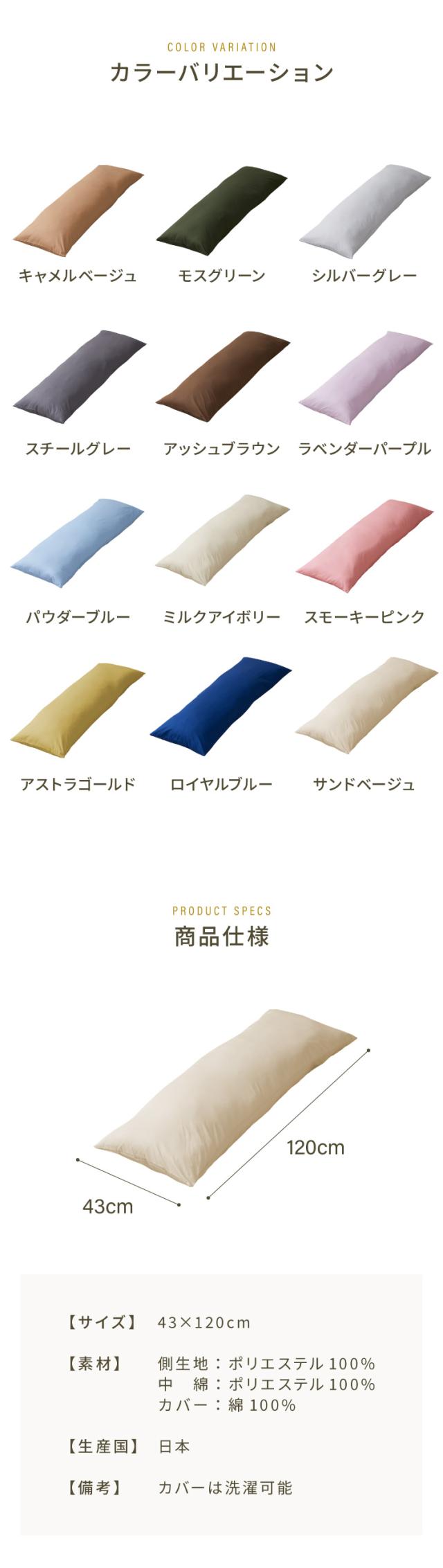 抱き枕 ストレート 日本製 綿100% 120cm テイジン製中綿使用 専用カバー付き 安眠 プレゼント ギフト 横向き かわいい 抱きまくら だきまくら まくら 枕 クッション 【送料無料】