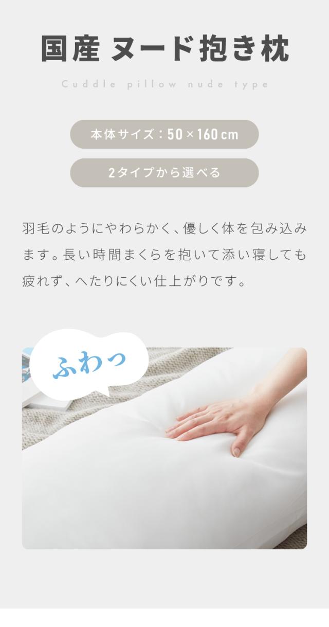 アニメ等身大 ヌード抱き枕 50×160cm 日本製 ホワイト ふわふわ もちもち アニメ 抱き枕 抱き枕本体 国産 白 アニメ ヌード 大きい 大きめ ロングクッション だきまくら 枕 まくら【送料無料】