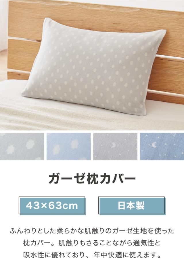 敏感肌にも優しく、肌触りの良いガーゼを使用した枕カバー!