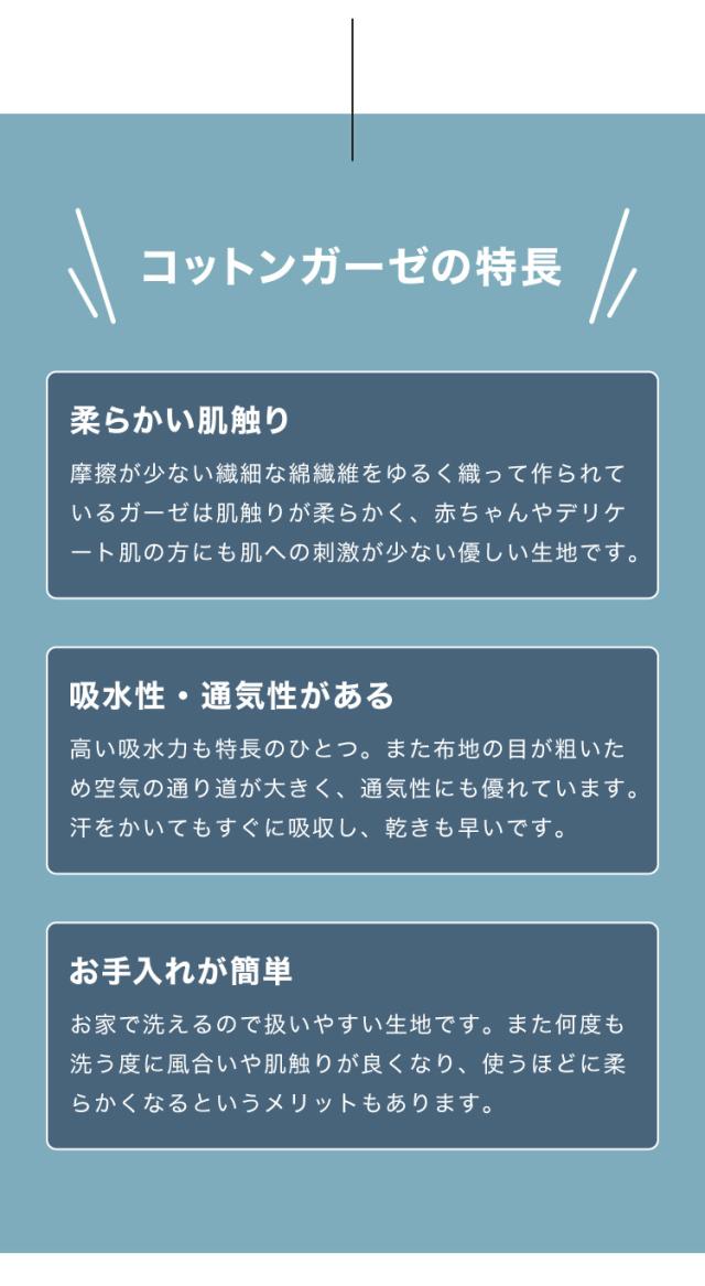 ガーゼは医療現場にも使われるほど通気性と吸水性、速乾性が高い素材です。