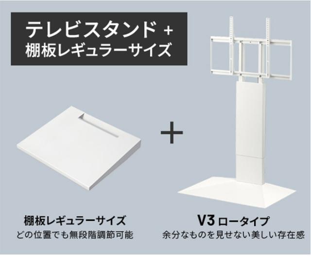 グッドデザイン賞受賞 テレビ台 WALLインテリアテレビスタンドV3 ロータイプ+棚板レギュラーサイズ 2点セット 32~80v対応 壁寄せテレビ台 テレビボード TVスタンド 背面収納 コード収納 ホワイト 白(代引不可)【送料無料】