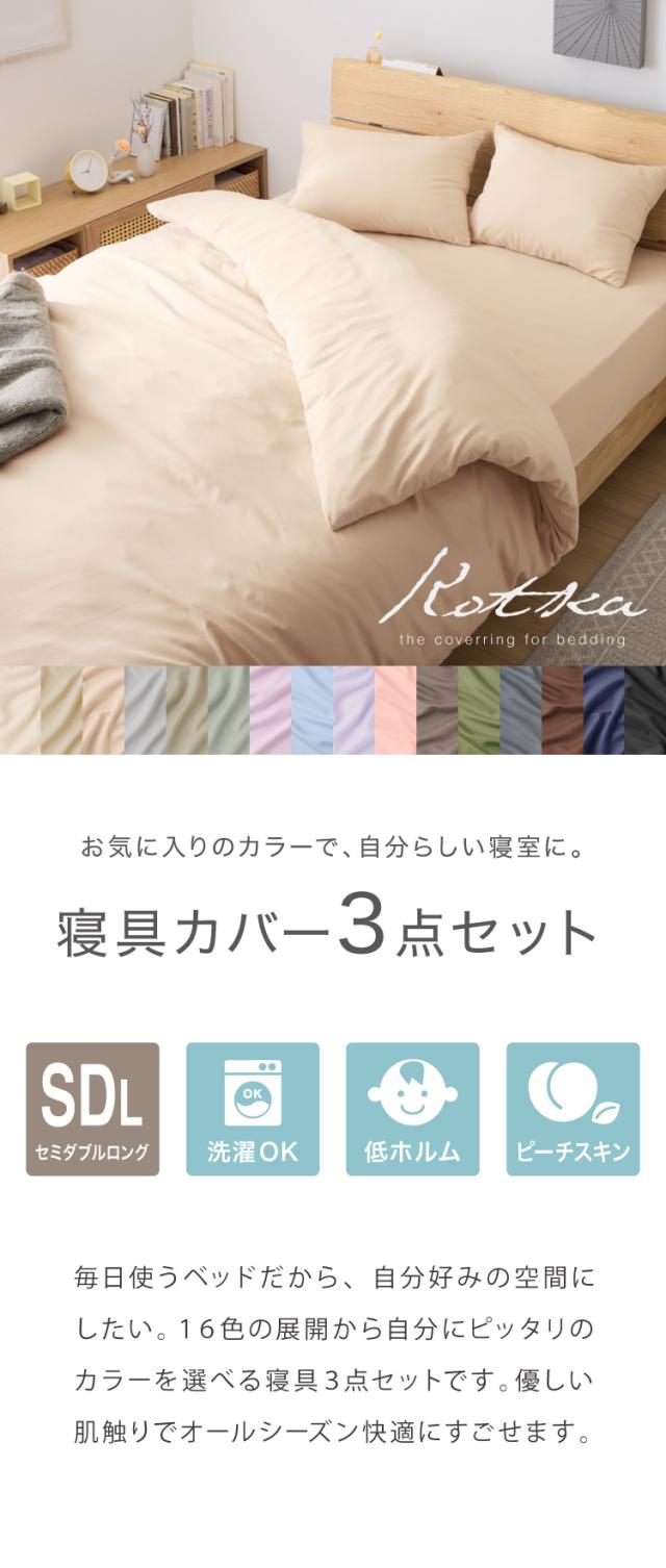 布団カバーセット セミダブルロング 3点セット コトカ Kotka 和洋共通仕様 和タイプ ベッド用 洗える 低ホルム ピーチスキン おしゃれ かわいい 布団カバー【送料無料】