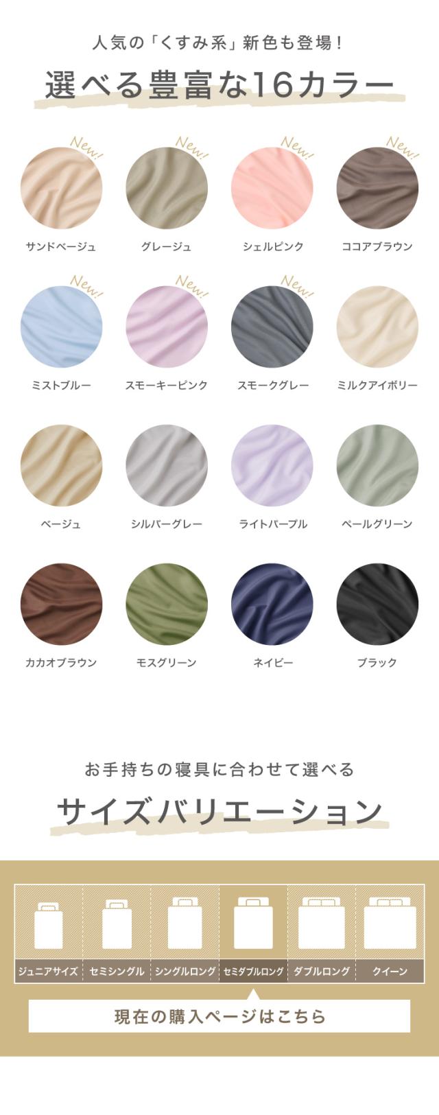 ベージュ/ミルクアイボリー/ ライトパープル / ペールグリーン / モスグリーン / ネイビー / カカオブラウン / ブラック / シルバーグレー / サンドベージュ / シェルピンク / スモーキーピンク / ミストブルー / スモークグレー / グレージュ / ココアブラウン