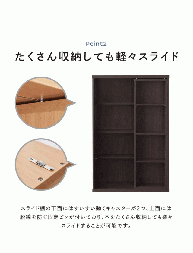 本棚 書棚 スライド式 幅60 シングル 4段 木製 コミックラック 漫画 書籍 収納 大容量 ブックシェルフ 木目 おしゃれ ブックラック 書斎棚【送料無料】