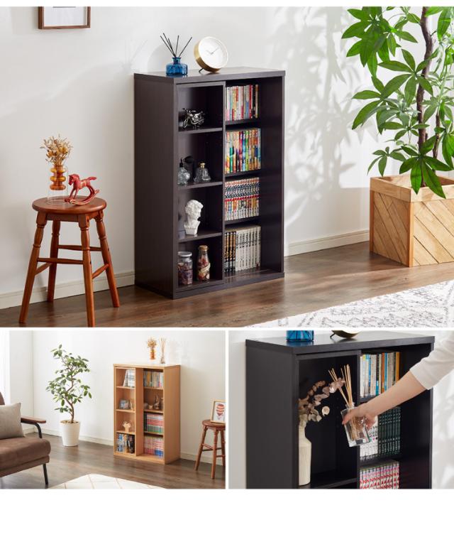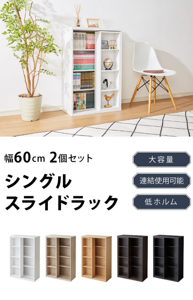本棚 書棚 スライド式 幅60 シングル 2個セット 木製 コミックラック 漫画 書籍 収納 大容量 ブックシェルフ 木目 おしゃれ ブックラック 書斎棚【送料無料】