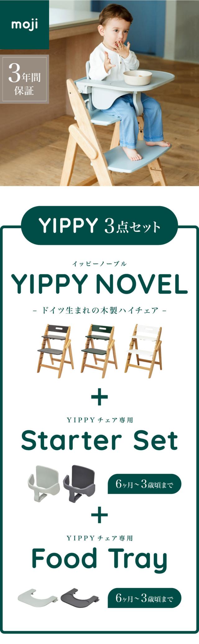 3点セット販売 moji モジ ベビーチェア イッピー ノーブル スターターセット フードトレイ 3点セット YIPPY NOVEL オーク材 折りたたみ ハイチェア キッズチェア 3年保証(代引不可)【送料無料】