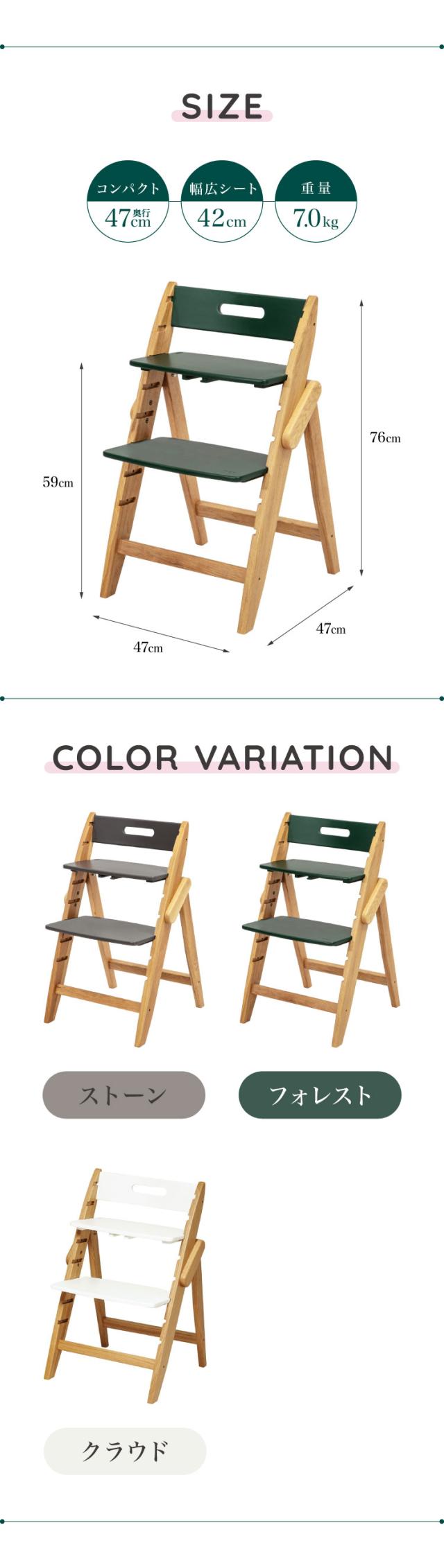 座面高:45cm~59cm(上から5番目~3番目の溝)