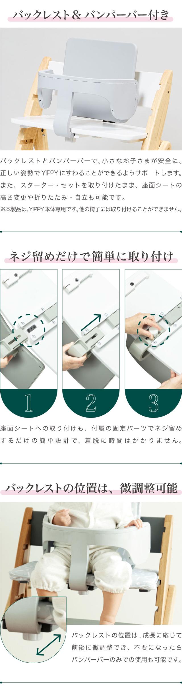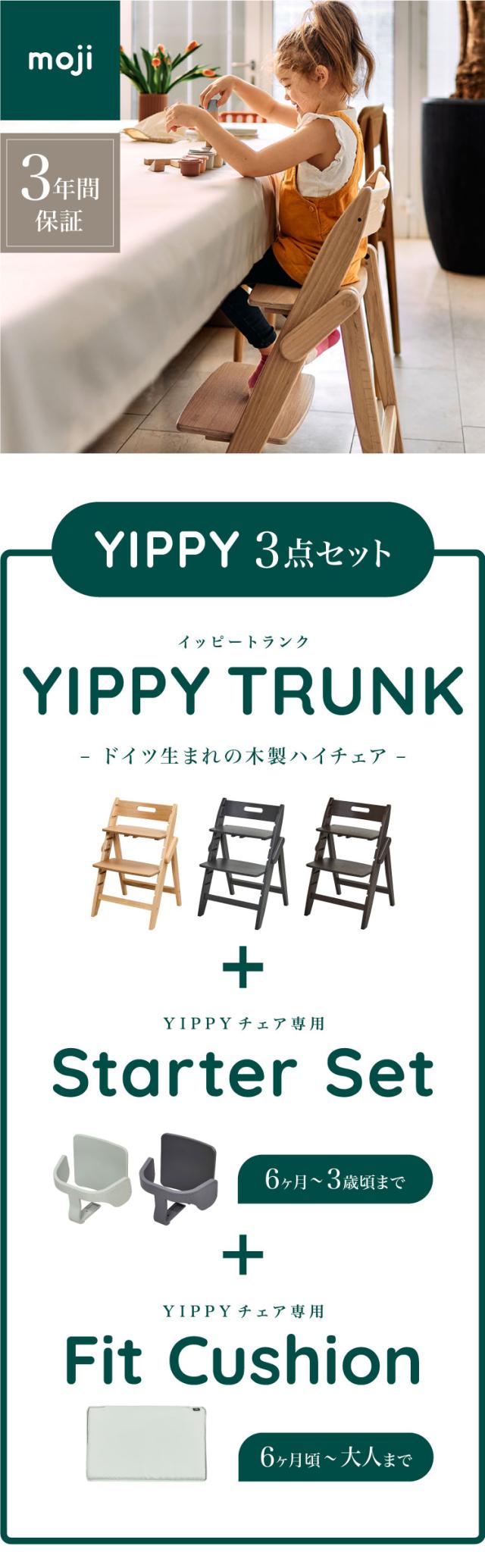 3点セット販売 moji モジ ベビーチェア イッピー TRUNK スターター・セット フィットクッション 3点セット YIPPY TRUNK トランク コージー ラバー材 折りたたみ ハイチェア キッズチェア イス 3年保