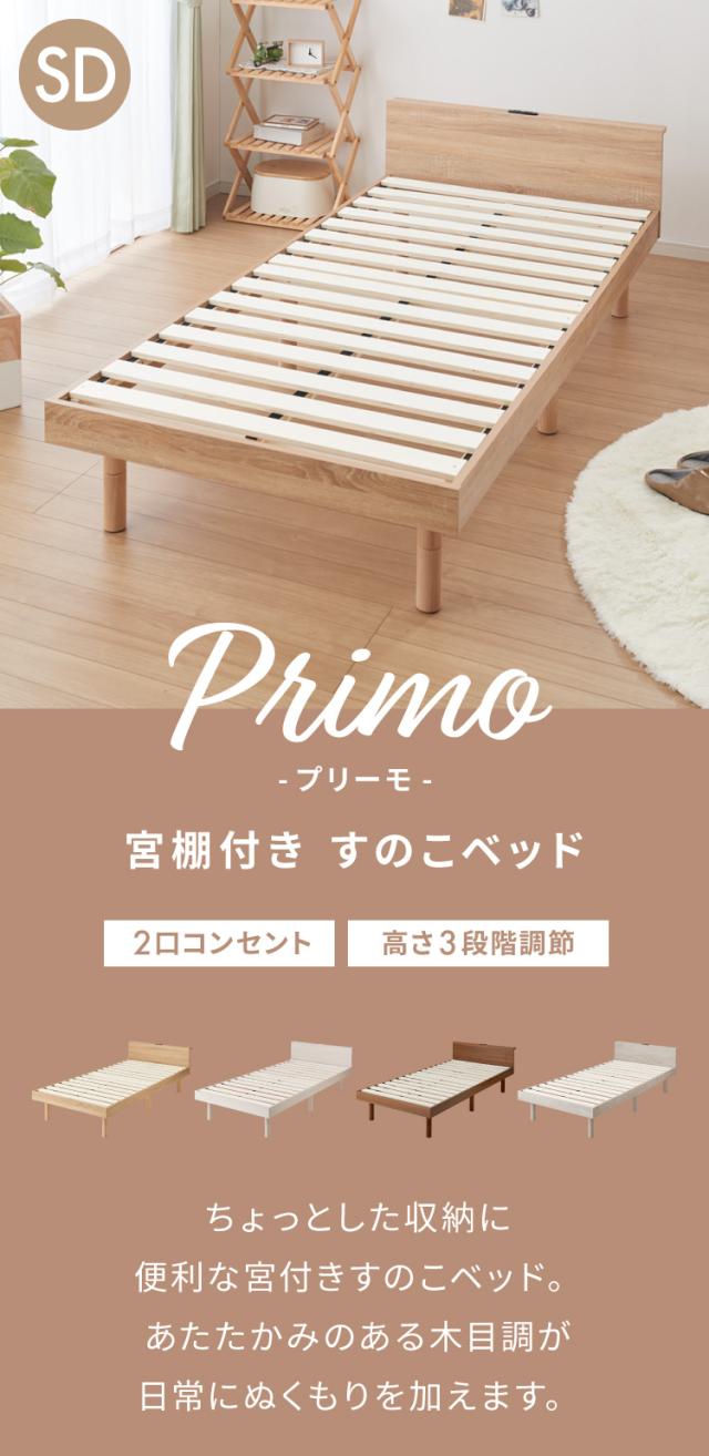 すのこベッド プリーモ 宮棚付き 高さ3段階調整