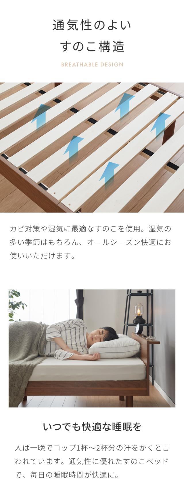 すのこベッド ウェンディ 宮棚付き 高さ3段階調整