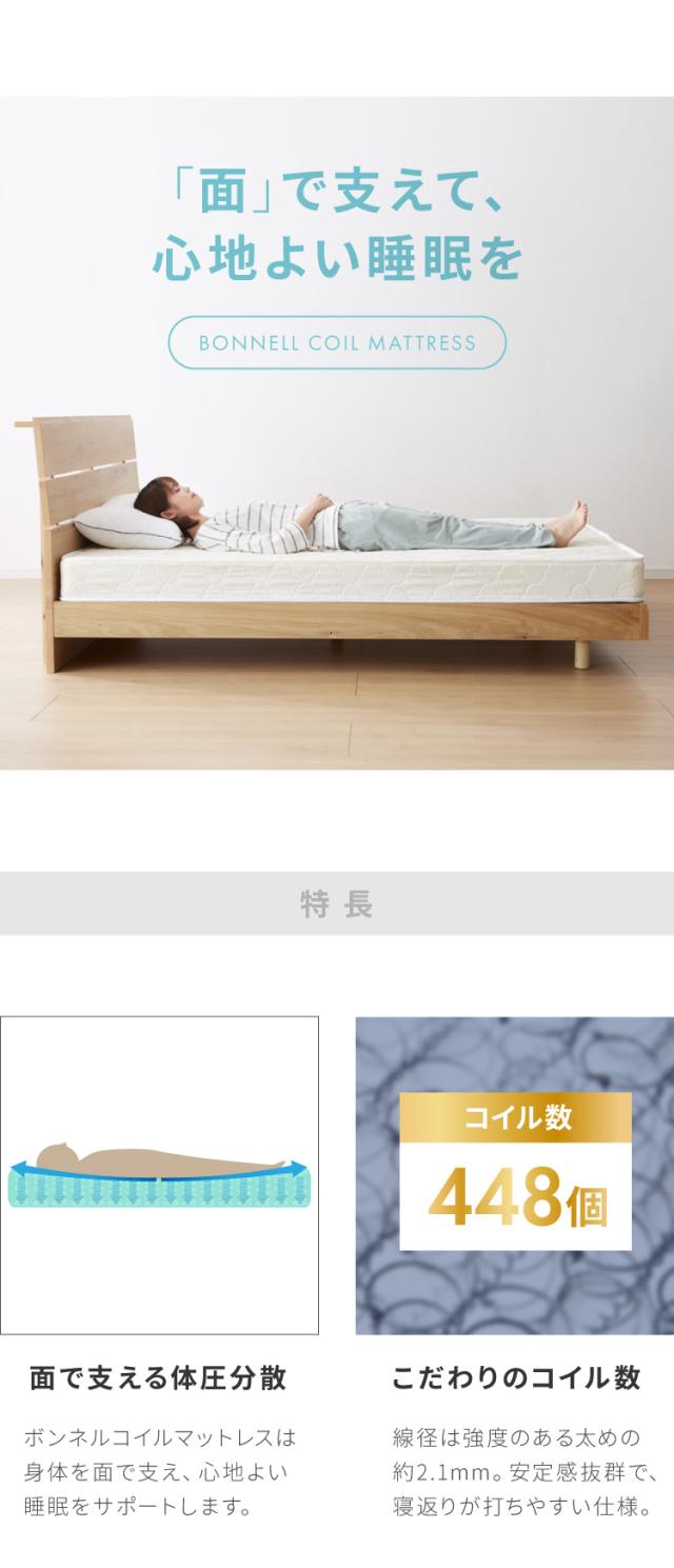 | ボンネルコイルマットレス付き シングル | ボンネルコイルマットレス付き セミダブル | ボンネルコイルマットレス付き ダブル |