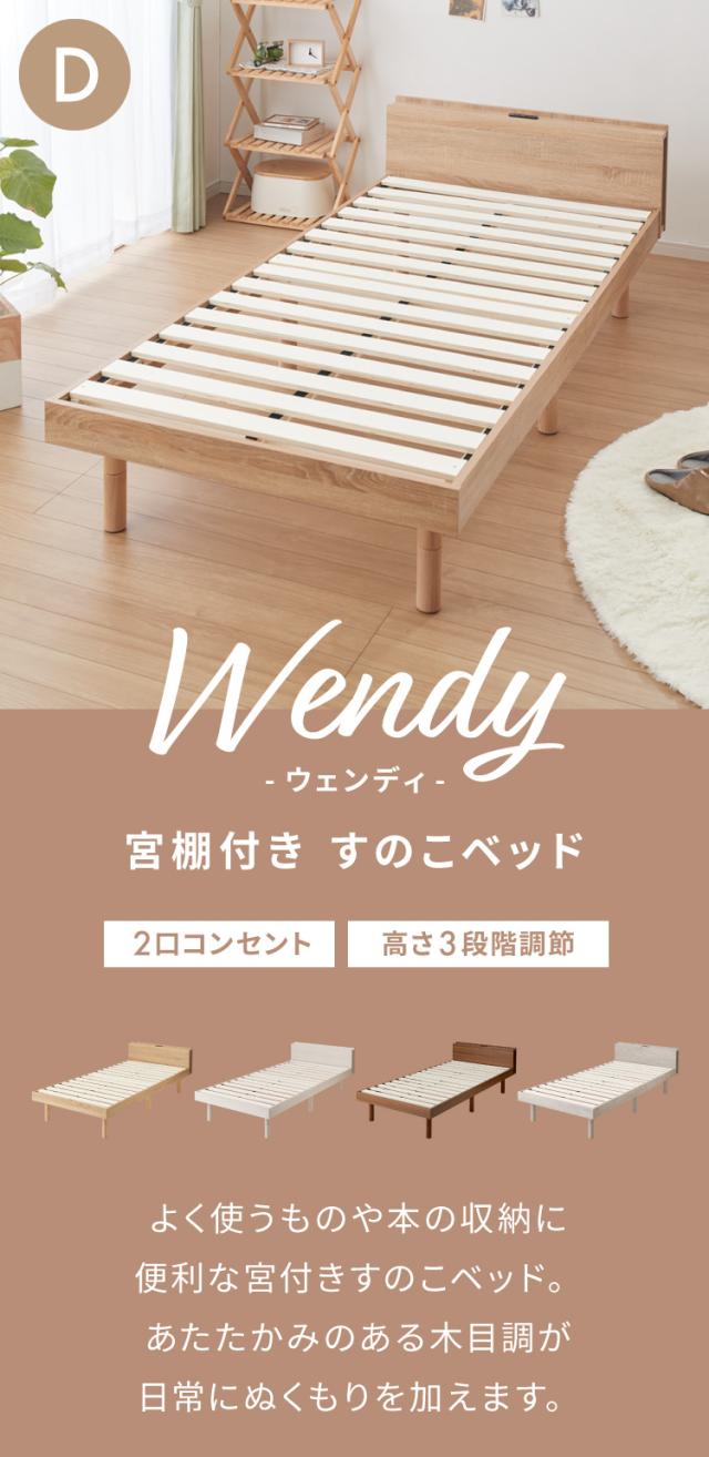 すのこベッド ウェンディ 宮棚付き 高さ3段階調整