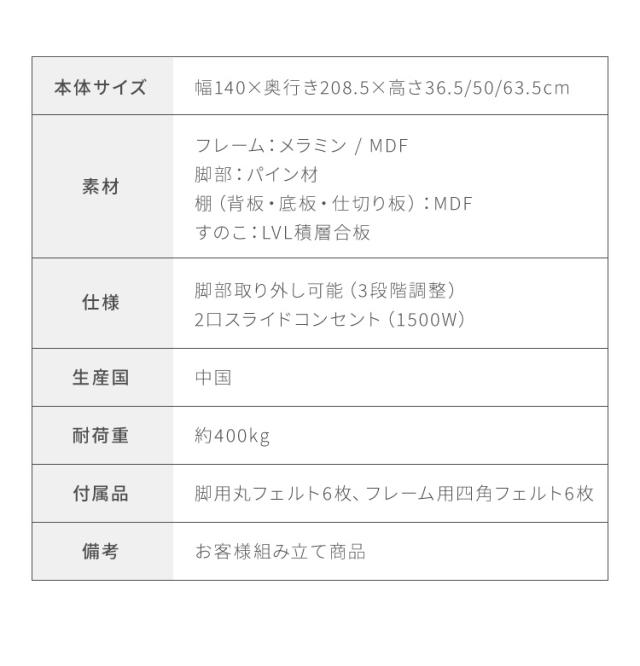 [本体サイズ]幅140.5×奥行き208.5×高さ36/46/60cm