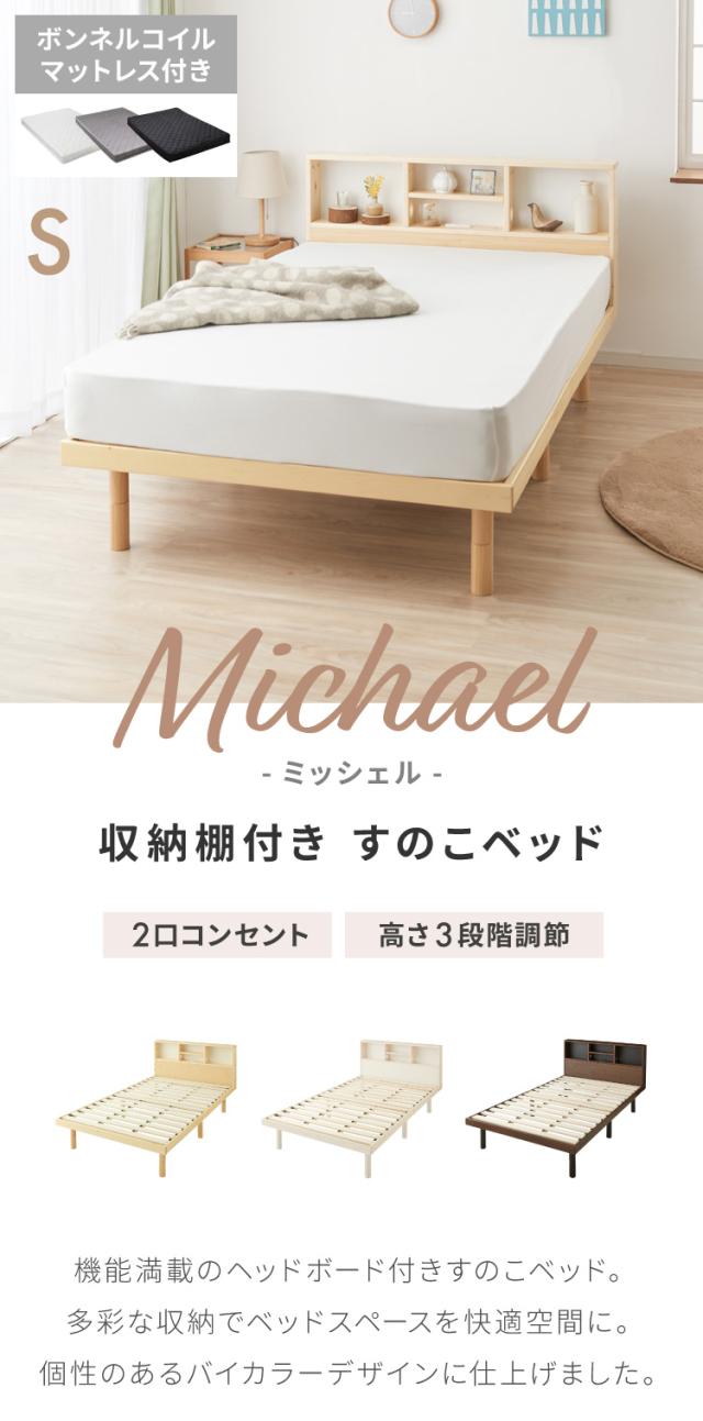 天然木パイン材を使用したベッドフレーム「ミッシェル」とボンネルコイルマットレスのセットになります。