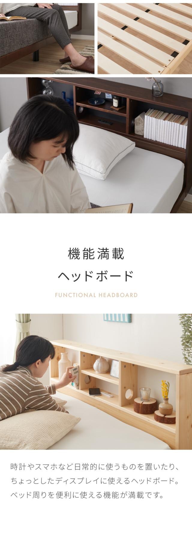 マットレス付き ベッド すのこベッド シングル ベッドフレーム 宮付き 宮棚 棚付き ヘッドボード 2口コンセント付き 天然目 収納ベッド シングルベッド 木製ベッド 脚付きベッド 高さ調整【送料無料】