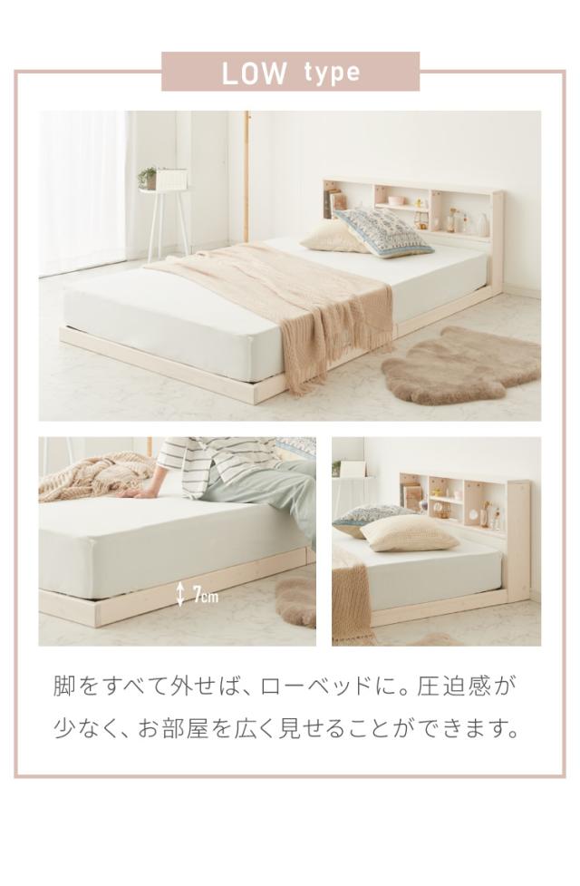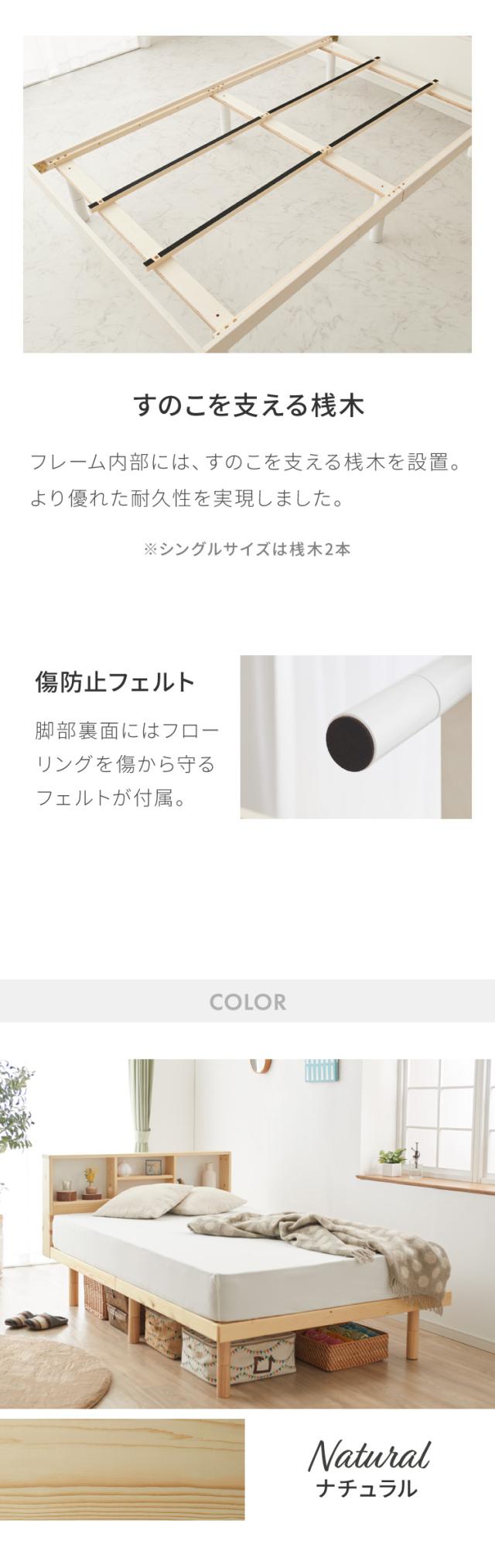 すのこベッド ウェンディ 宮棚付き 高さ3段階調整